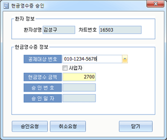 - 현금영수증 발급시 원클릭으로 발급 가능합니다. (휴대폰번호, 주민번호, 사업자번호, 자진발급, 현금영수증 카드 지원)